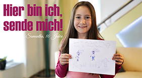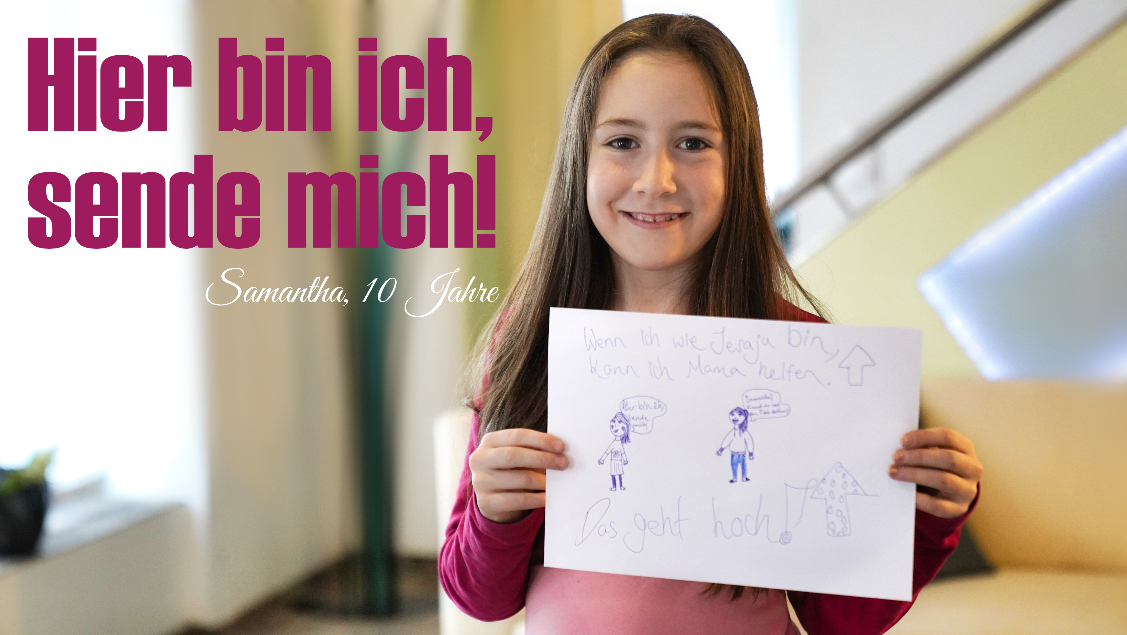 Samantha inspirierte die biblische Geschichte von Jesaja, der zu Gott sagte: „Hier bin ich, sende mich!“. Sei gespannt, wie kreativ Samantha dies in ihrem Alltag umsetzt.